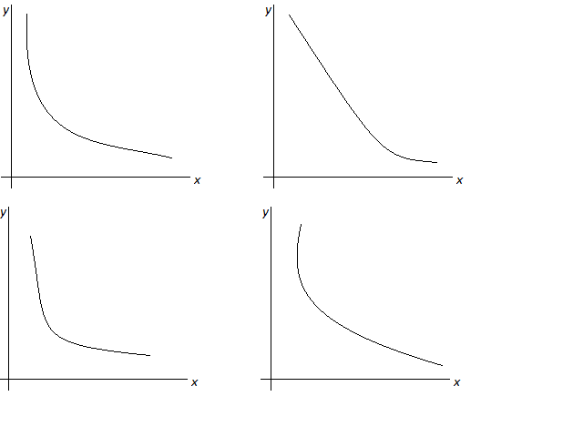 Figura 2. En esta figura observamos diferentes formas de las curvas de indiferencia que cumplen con la forma general decreciente y convexa si la miramos desde el origen de coordenadas.