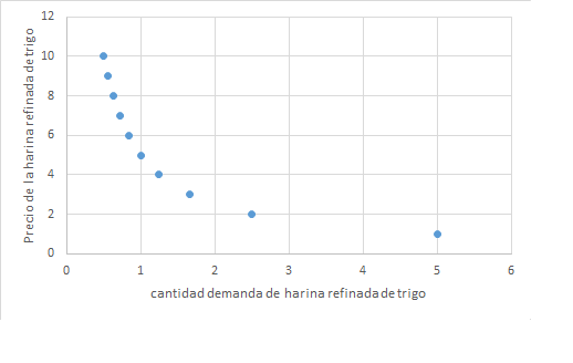 x es la cantidad que el individuo de nuestro ejemplo demandará de harina refinada de trigo, medida en kilogramos y